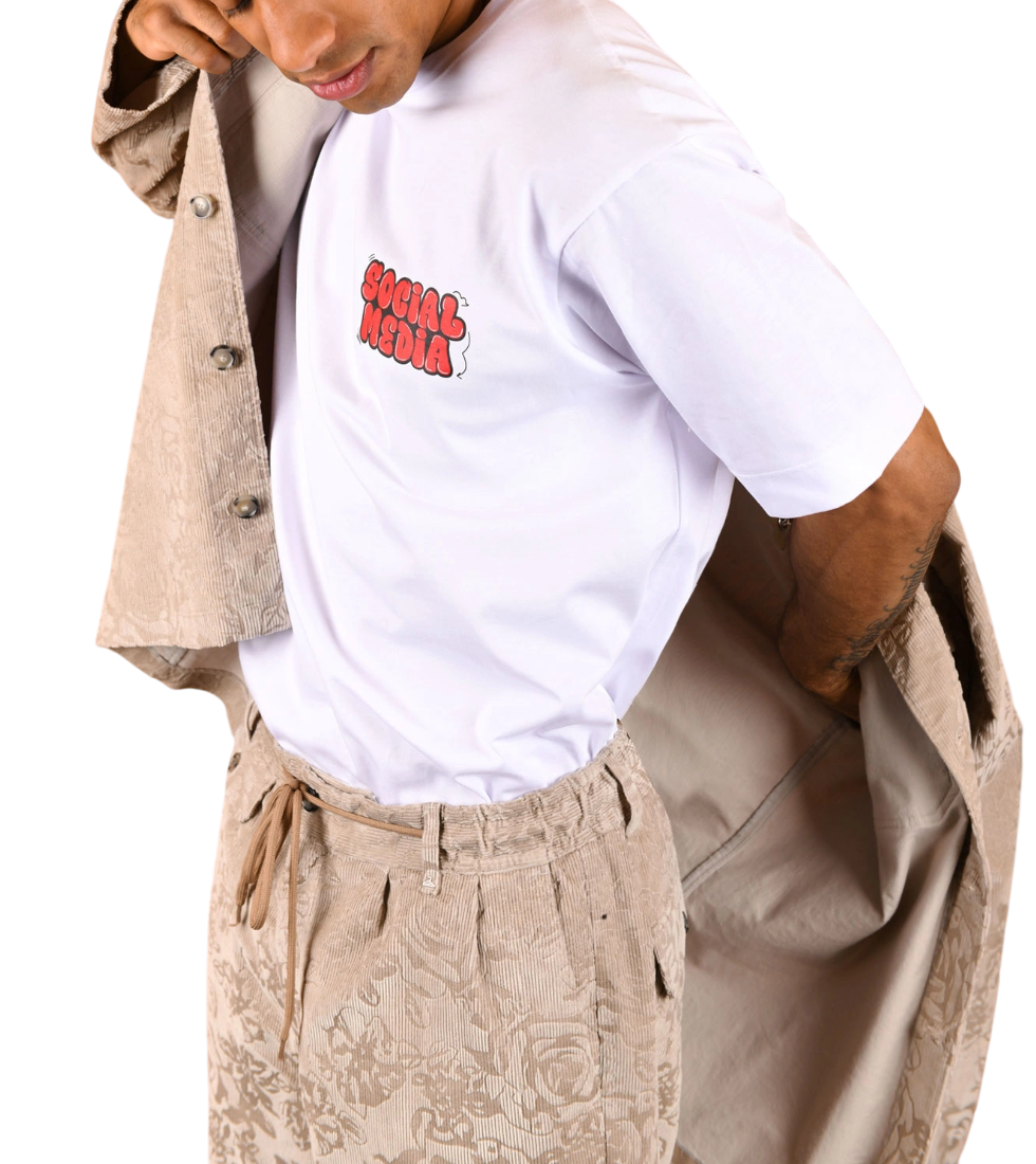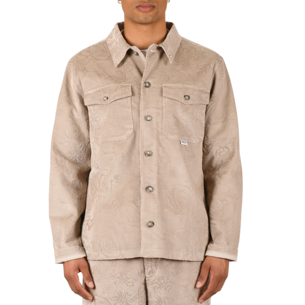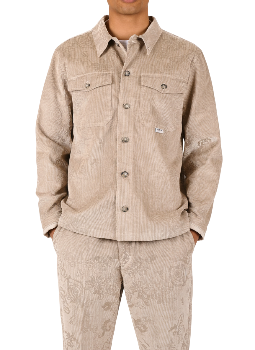 • Giacca devorè in velluto a coste con trama floreale in misto cotone