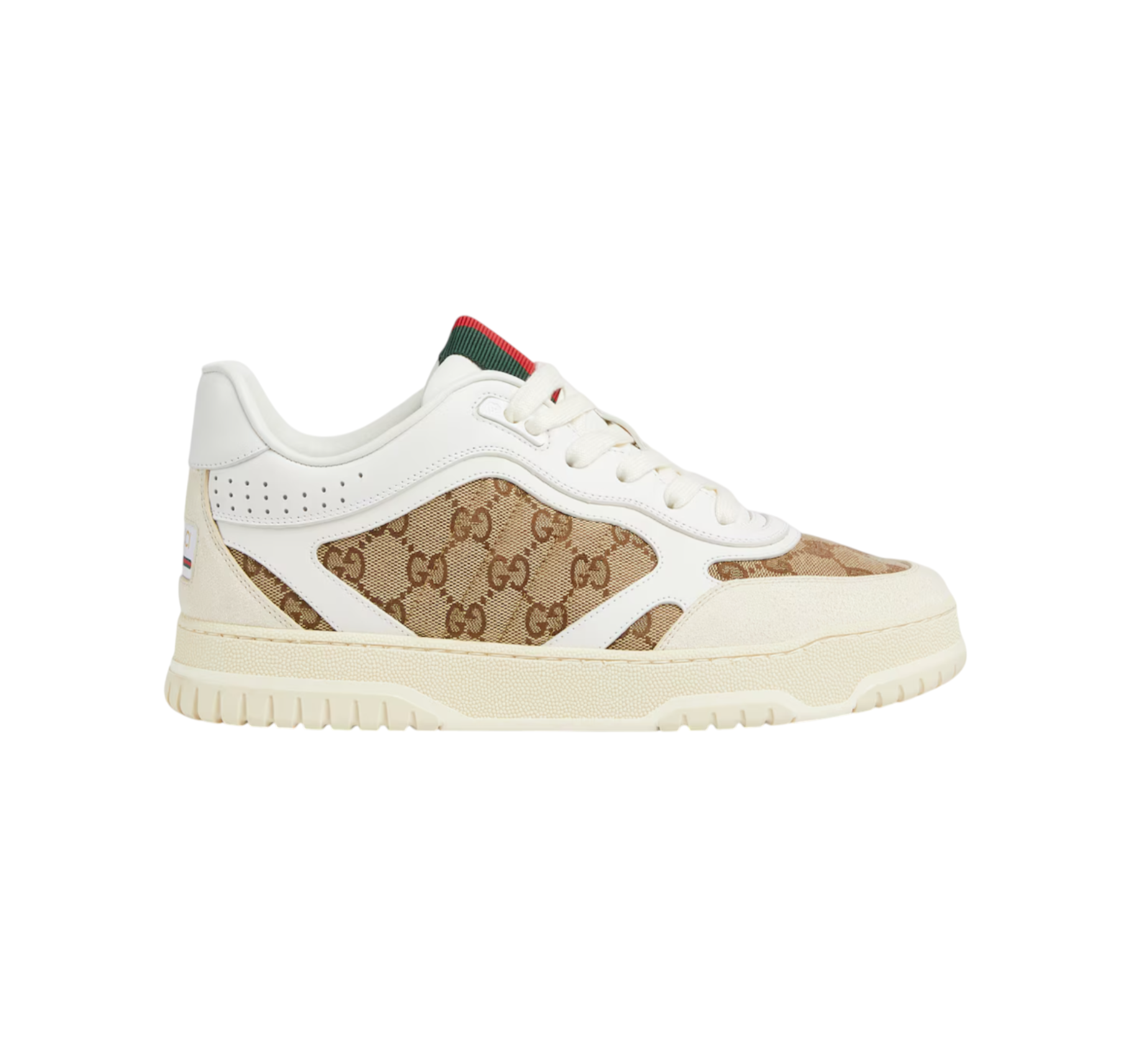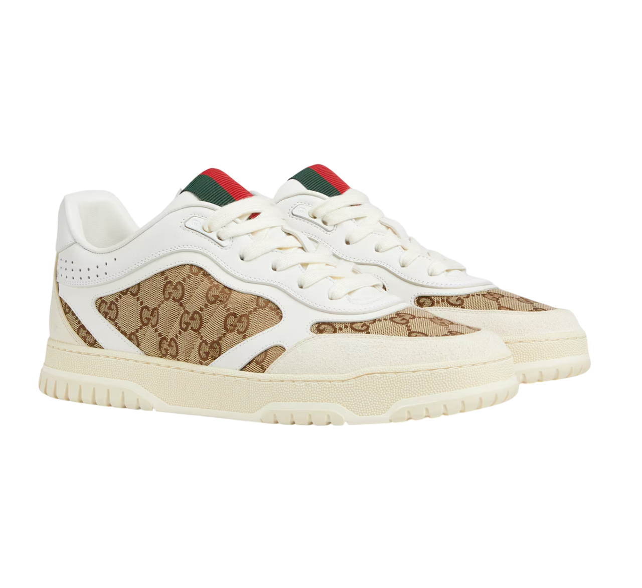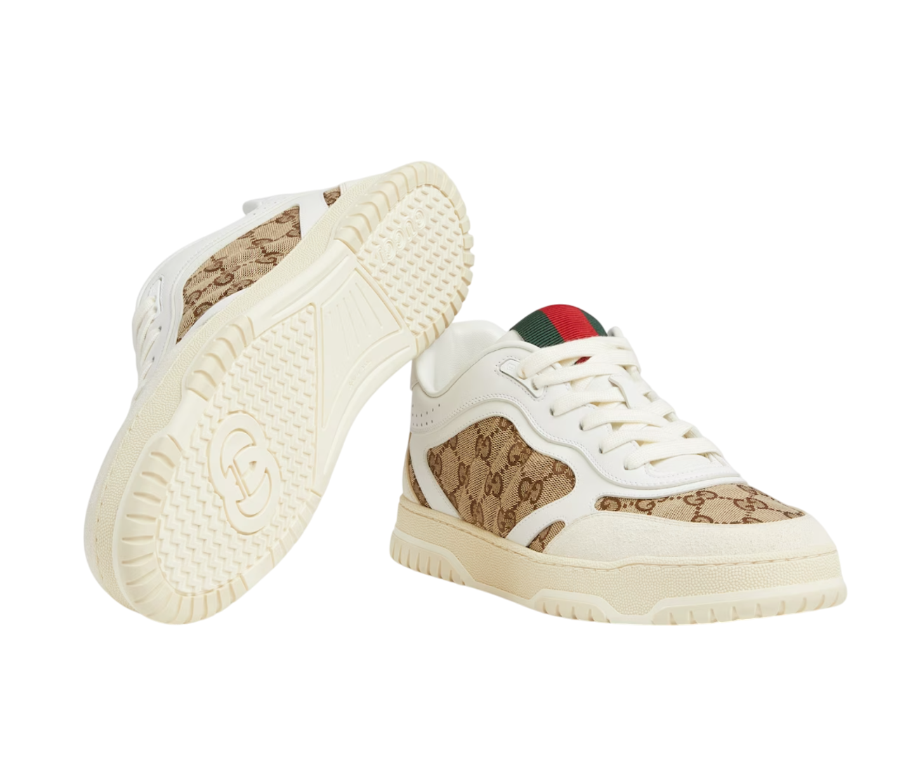 Sneaker Uomo GUCCI presentano una silhouette contemporanea resa più vivace dalle storiche righe Gucci. Caratterizzate da dettagli iconici, queste sneaker sono realizzate in tessuto Original GG beige e bianco e completate da un nastro Web verde e rosso sulla linguetta.